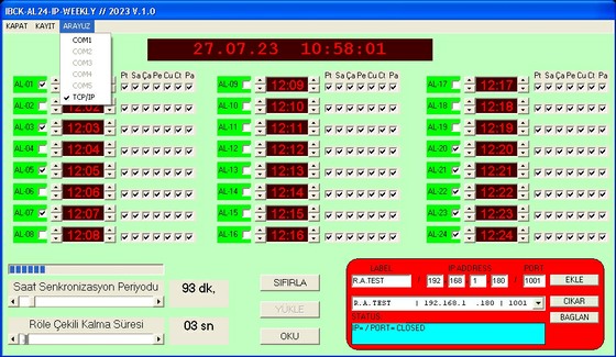 Seri port veya ethernet üzerinden programlanabilir alarmlı saatler